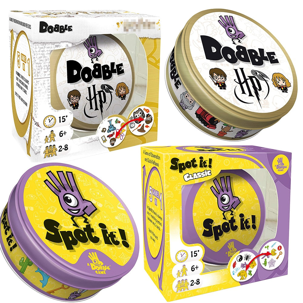 Dobble HP 16 Style Harried Spot It Card Game Toy Iron Box Potter Sport Go Camping Hip Kids Board Games Gift Animals Alphabet123